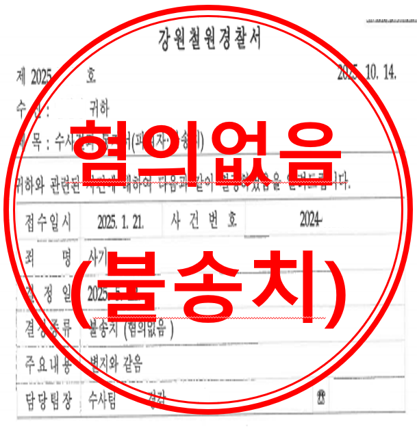 결국 의뢰인은 [혐의없음(불송치)] 결정을 받아, 검찰로 송치되지 않고 경찰 단계에서 사건을 조기에 종결지을 수 있었습니다.